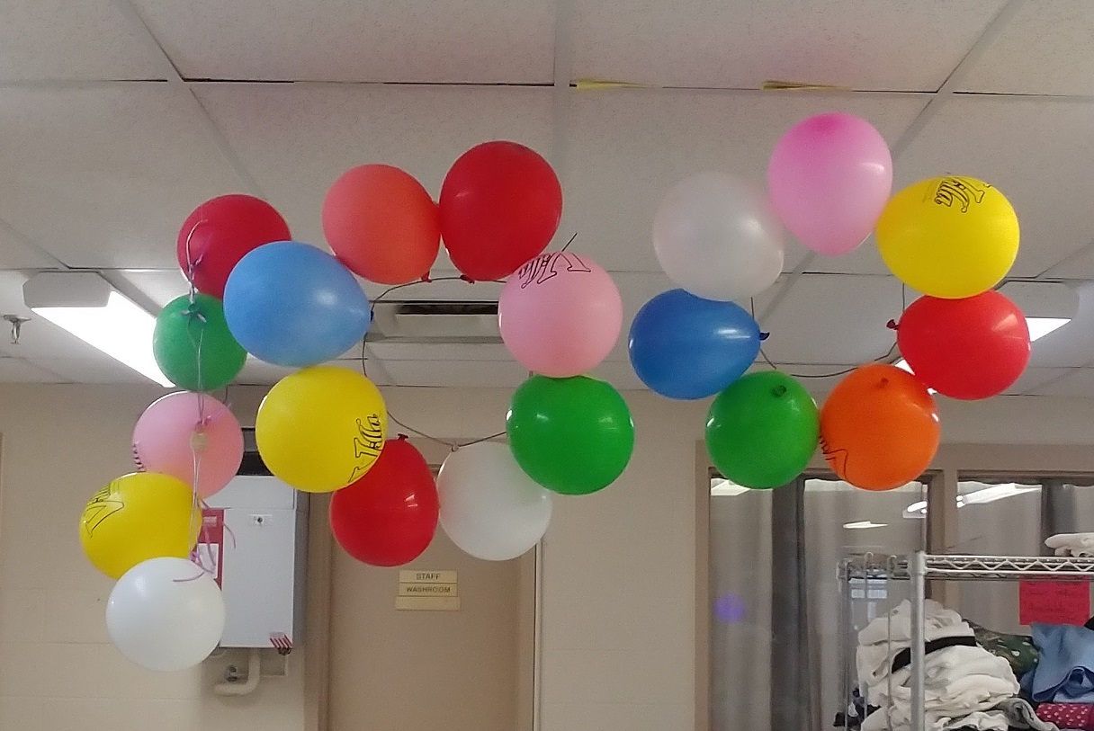 I had just worn a hairnet and was next blowing up balloons for the '100' above. I put the two ideas together and made a watcher who would encourage others to work harder. I then placed half a dozen Postit notes with coworkers' names so that each day another one can be watched.